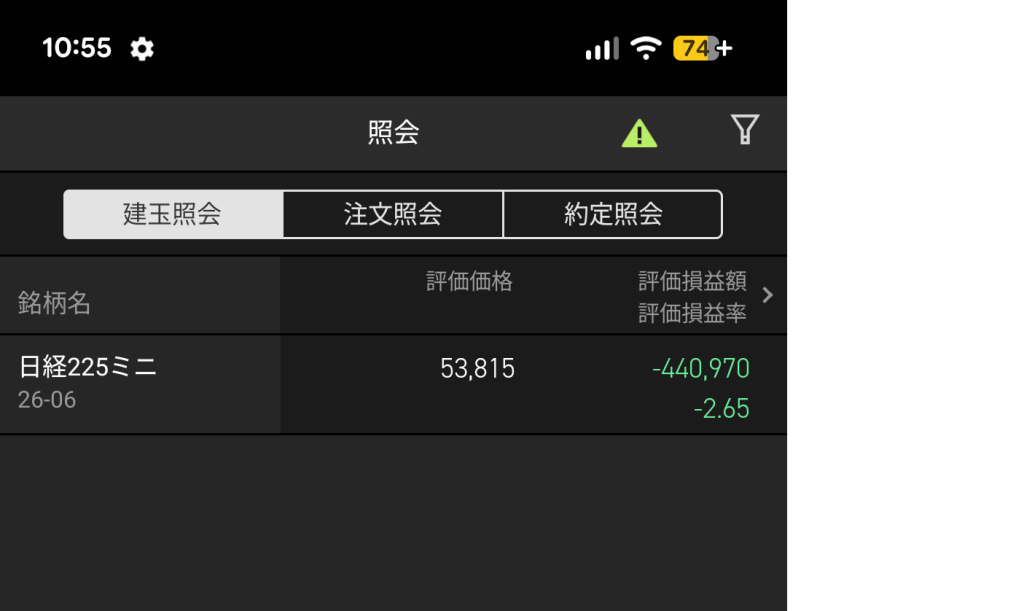 ポジション:日経平均先物(ミニ)買い建て3枚